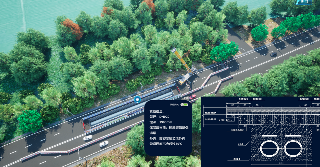 針對“東城智慧”項(xiàng)目,對潘王路段采用三站一網(wǎng)技術(shù)結(jié)合,進(jìn)行實(shí)景還原與施工場景模擬展示,通過光纖與數(shù)控設(shè)備的數(shù)據(jù)與平臺掛接。